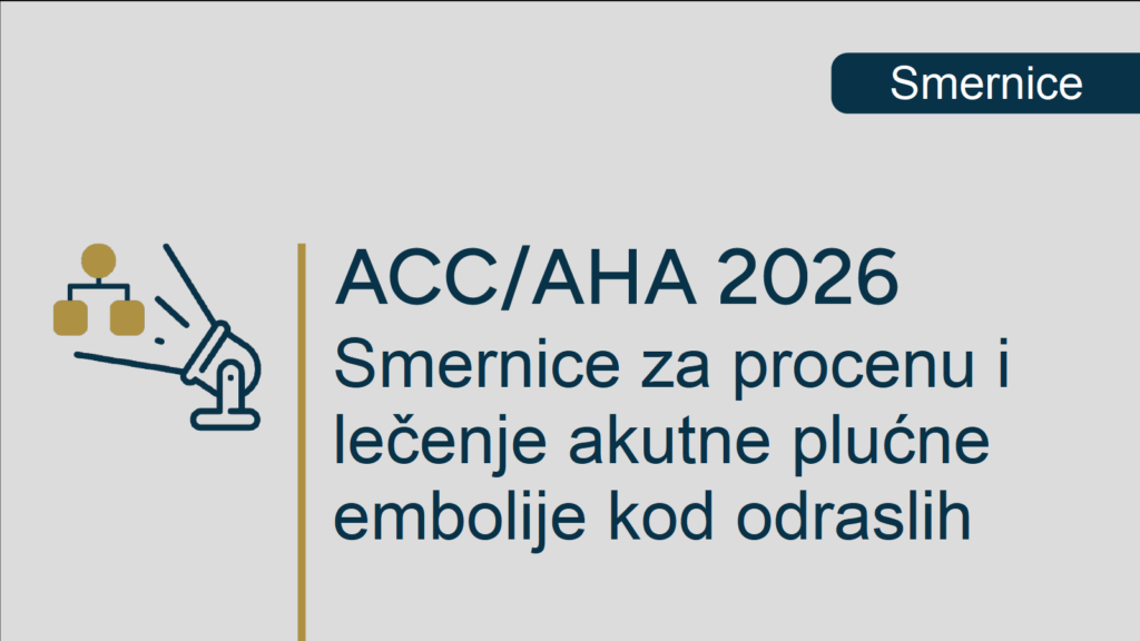 Najvažnije poruke Predstavljen je novi sistem kliničke klasifikacije pod nazivom „Kliničke kategorije akutne plućne embolije“ (Acute Pulmonary Embolism Clinical Categories), sa 5 kategorija (A–E) i podkategorijama, u rasponu od niskog do visokog rizika za nepovoljne ishode, sa ciljem unapređenja preciznosti procene težine bolesti, procene prognoze i donošenja terapijskih odluka zasnovanih na dokazima kod bolesnika sa akutnom plućnom embolijom. Bolesnici sa akutnom plućnom embolijom koji su asimptomatski (AHA/ACC PE kategorija A) mogu se bezbedno otpustiti kući iz urgentnog prijema i ne zahtevaju hospitalizaciju. Rani otpust iz bolnice se generalno preporučuje kod bolesnika sa akutnom plućnom embolijom koji imaju simptome, ali nizak … Više