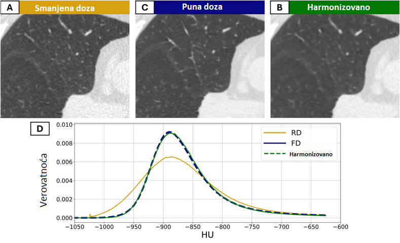 (A) CT snimak dobijen protokolom sa smanjenom dozom (RD).
